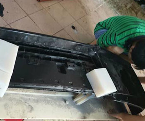 将配好的胶沿一固定灌注点缓慢浇注,用真空机抽好真空。